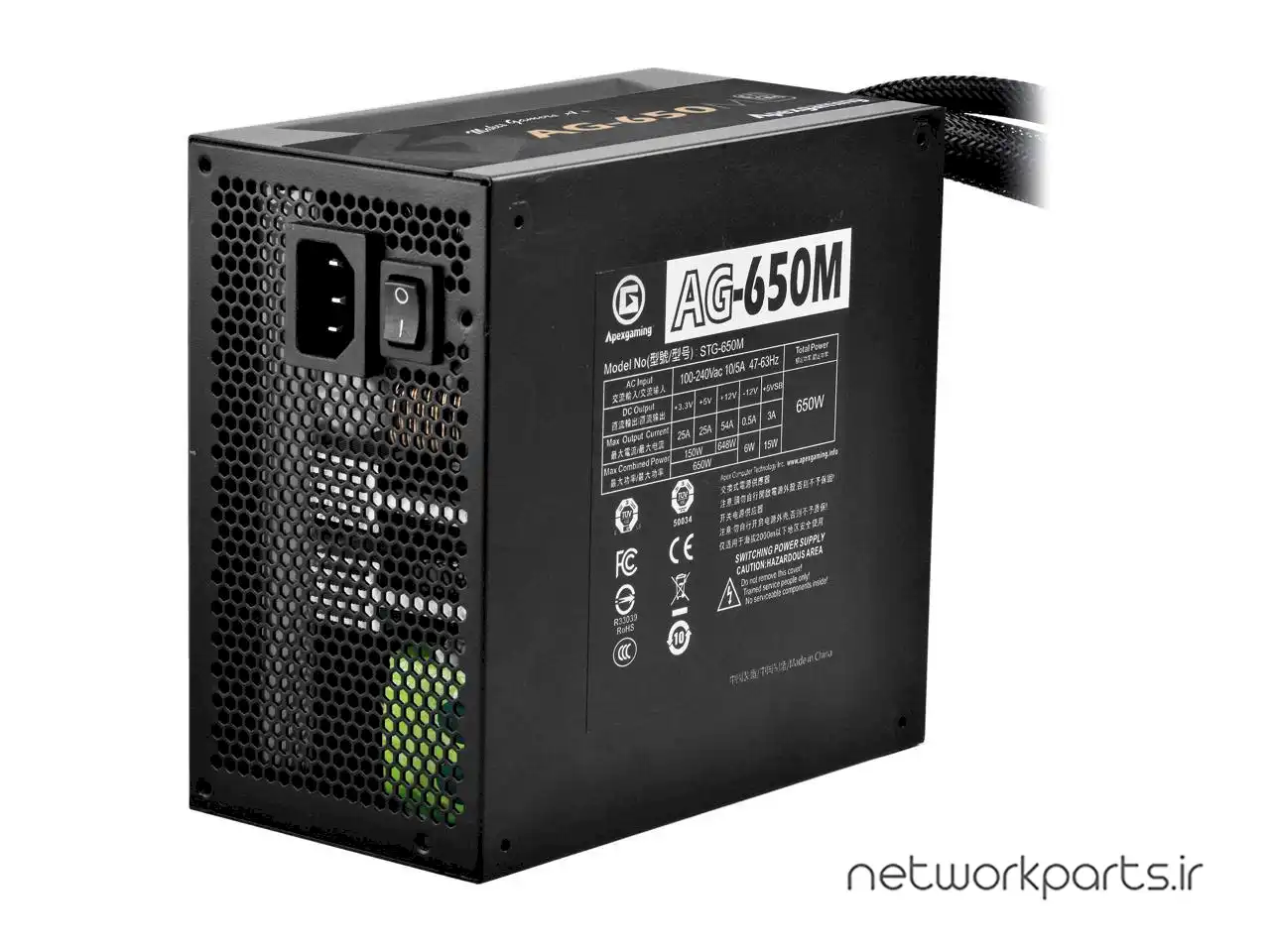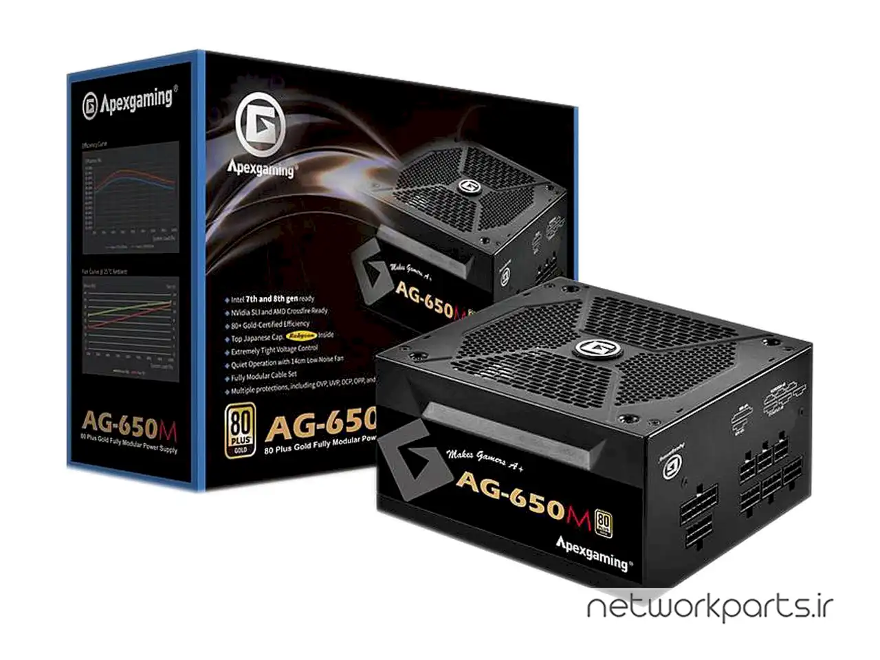 ویژگی ها | 1. Make sure power cord is plugged into electronic outlet and power switch is at "I" position., 2. ATX20+4pin, CPU 4+4P are well connected and CPU, MEMORY are both installed on the motherboard., 3. If the power supply does not work properly, please contact Apexgaming immediately., 80 PLUS Gold Certification, Apexgaming AG series power supply follows Intel ATX power supply design guide with no-load protection (AG series power supply will not boot up alone or at no-load)., Fully Modular for easy upgrade. Clean look, better cooling, Heavy-duty protections, including OVP (Over Voltage Protection), UVP (Under Voltage Protections), OCP (Over Current Protection), OPP (Over Power Protection), SCP (Short Circuit Protection), and Dual, Notice:, Quiet Operation with 140mm low noise fan, To perform the AG power supply test-, Ultimate game performance |