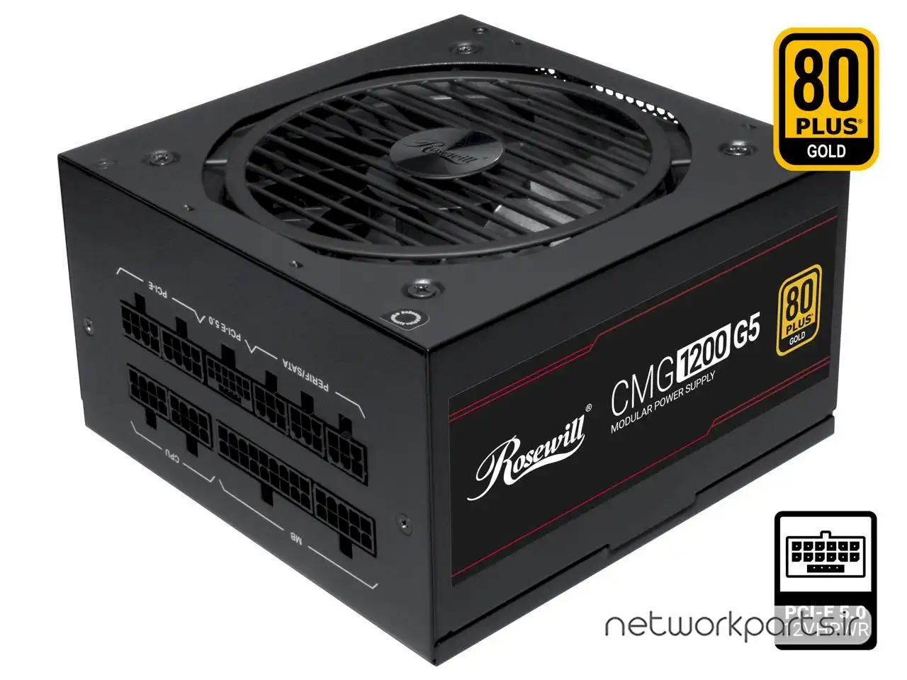 | ویژگی ها | 1 x Silent 120mm FDB Fan, 12+4-Pin 12VHPWR Connector, 1200 Watts Max Power, 80 PLUS Gold-Certified: Steady power output at up to 90% efficiency, and Cybenetics Platinum certified for lower power consumption, less noise, and cooler temperatures., Active-PFC with auto AC-input voltage adjustment (100 - 240V), Compact 140mm size, Newest PCIe 5.0 and ATX 3.0 Compatible, Over Temperature Protection / Over Current Protection / Over Voltage Protection / Power Protection, Under Voltage Protection, and Short Circuit Protection provide maximum safety to your critical sys, Safety & EMI Approval: cTUVus, FCC, Single strong 12V rail - ideal for Gaming system |
