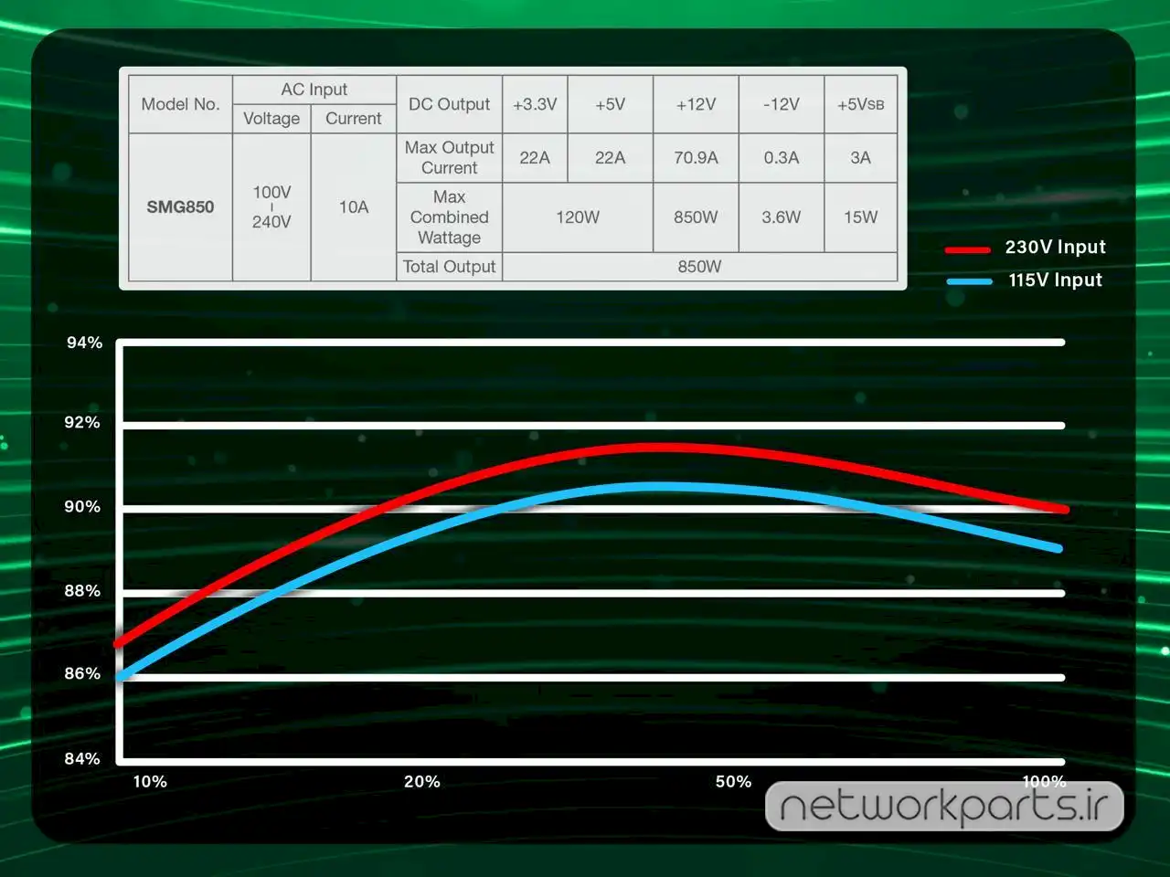 | خروجی | -12V@0.3A, +12V@70.9A, +3.3V@22A, +5V@22A, +5VSB@3A |