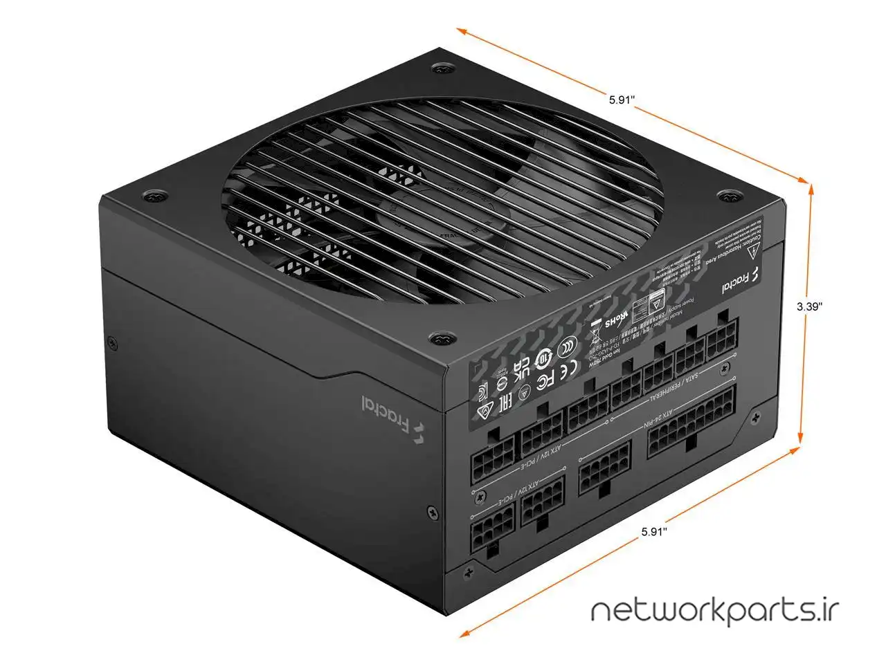 ویژگی ها | 80 PLUS Gold Efficiency rating for reduced noise and energy consumption, Compact 150 mm depth allows for installation in compact cases or provides additional cable management room in larger cases, DC-DC design for more precise electrical output and full compatibility with modern components, Equipped with a large temperature-controlled Fractal Design Dynamic 140 mm fan, custom-tailored for power supply use with an exceptionally low minimum speed, Fully modular design for reduced clutter and maximum ease of installation, Long 7-year warranty and a full electrical protection suite provides peace of mind, Premium Japanese 105°C/221°F Capacitors, Supports the ATX 2.52 standard with improved start-up time and transient load response |