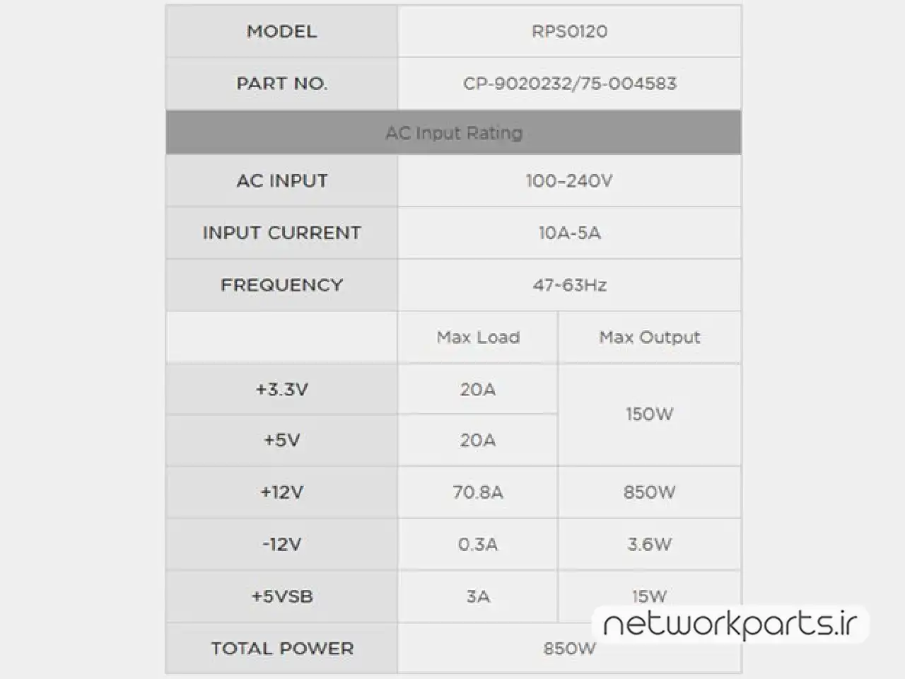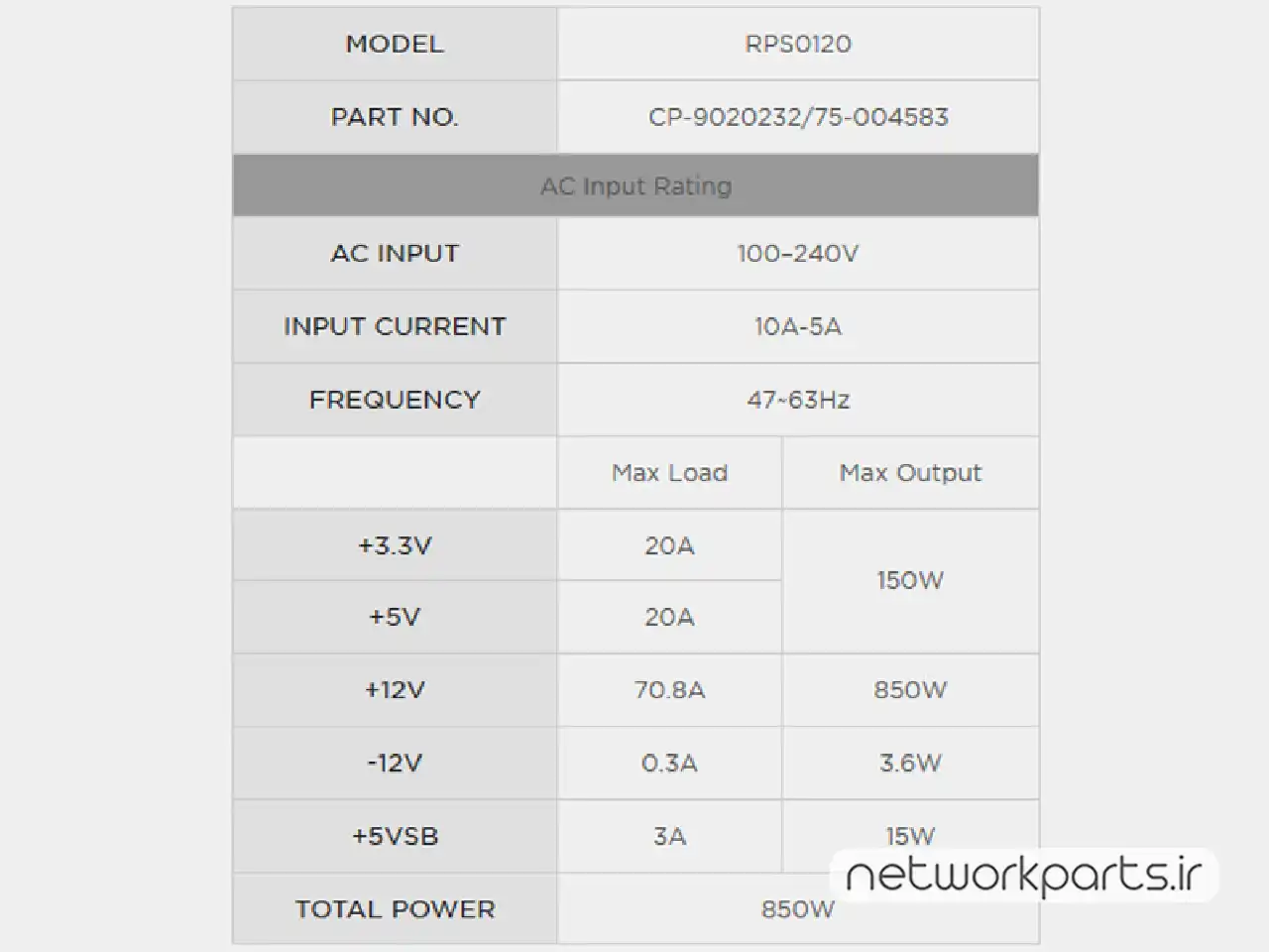 خروجی | 3.3V DC @ 20A 5V DC @ 15A 12V DC @ 35A -12V DC @ 500 mA 5V DC @ 2.5A |