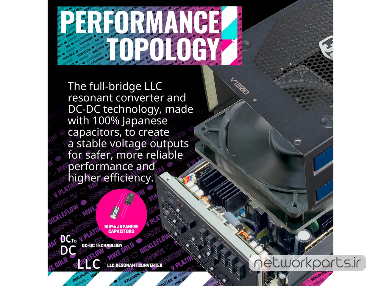 اتصالات | ATX 24 Pin: 1x = 1x (650mm), EPS 4+4 Pin: 1x = 1x (650mm), EPS 8 Pin: 1x = 1x (750mm), PCI-e 6+2 Pin: 12x = 6x(650+120mm), Peripheral 4 Pin: 8x = 2x (500+120+120+120mm), SATA: 16x = 3x (500+120+120+120mm) & 1x (550+120+120+120mm) |