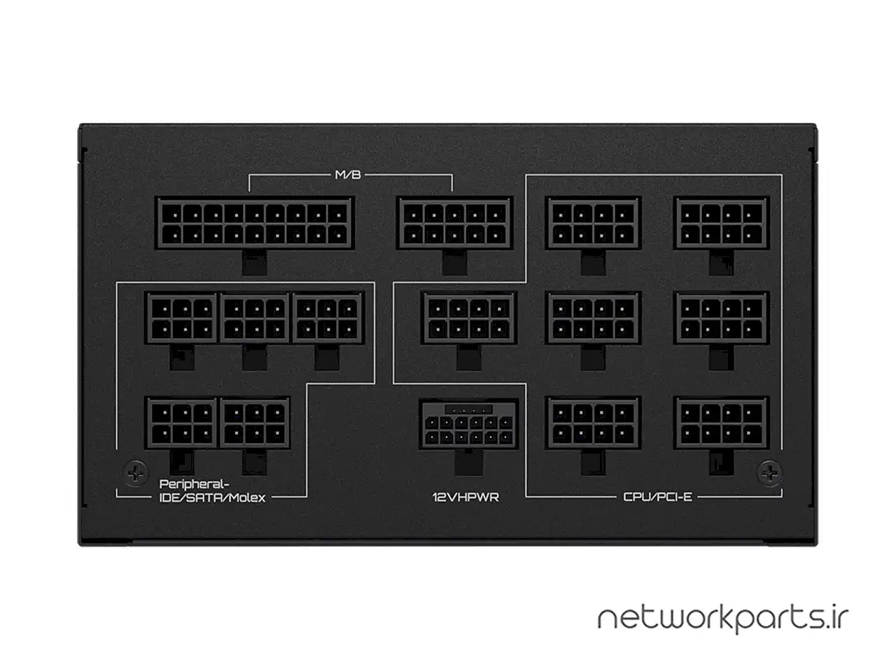 اتصالات | 4 Pin Peripheral x 6+4-Pin floppy x 2 : 600mm+150mm+150mm+150mm*2, ATX/MB 20+4 Pin x 1, CPU/EPS 4+4 Pin x 2 : 650mm*2, PCIe 16 Pin x 1: 700mm*1, PCIe 6+2 Pin x 8 : 650mm+150mm*3, 650mm*2, SATA x 12 : 650mm+150mm+150mm+150mm*3 |