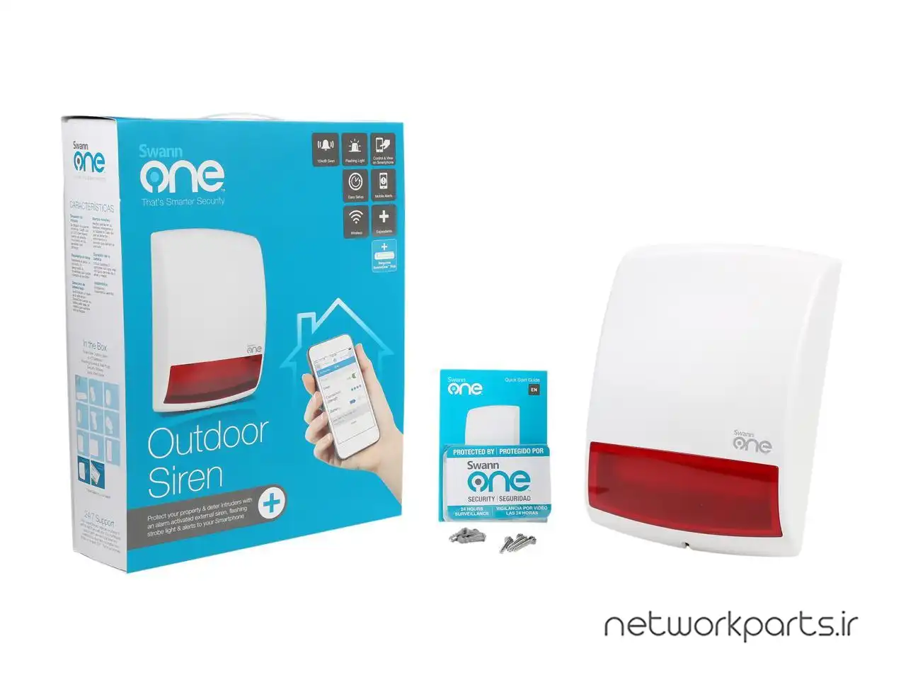 محتویات بسته بندی1x Outdoor Siren, 4x D Batteries, Quick Start Guide, Security Stickers