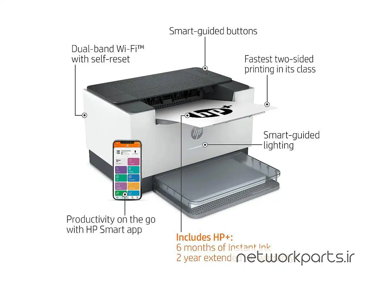 محتویات بسته بندی | 6GW62F HP LaserJet Pro M209dw Printer, Cartridge (~700 pages), Dust Cover, HP Black LaserJet Toner, Power cord, Reference Guide, Setup Poster, Warranty Guide & Flyer in some countries |