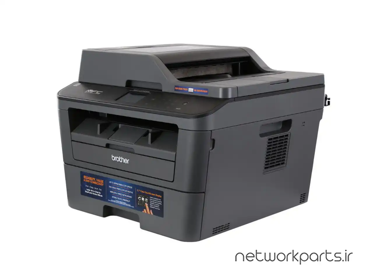 ویژگی ها | 2.7" Color TouchScreen Display:, Advanced Duplex Capabilities:, Built-in wireless 802.11b/g/n and Ethernet network interfaces for sharing with multiple users on your network or connect locally to a single computer via its USB interface., Convenient mobile device printing & scanning:, Fast printing and copying., Features an adjustable, 250-sheet capacity paper tray for letter or legal size paper. Plus, a single-sheet manual feed slot for envelopes, labels or thicker media., Flexible connectivity:, Flexible Paper Handling, Help improve your productivity with print and copy speeds of up to 32 ppm and produce professional output at up to 2400x 600 dpi., High quality color scanning with a variety of "scan to" and advanced scanning features, including ID Scan, Blank Page Skip and more., Offers intuitive navigation and easy scanning to popular cloud services including DROPBOX, GOOGLE DRIVE, EVERNOTE ONENOTE and more., Print from your mobile device via: AirPrint, Google Cloud Print, Brother iPrint&Scan, Cortado Workplace and Wi-Fi Direct. Plus, wirelessly scan to your mobile device with the Brother iPrint&Sc, Two-sided printing help save paper. Plus, scans both sides of the page in a single-pass for fast, two-sided copying, scanning, faxing., Versatile, high-quality color scanning: |