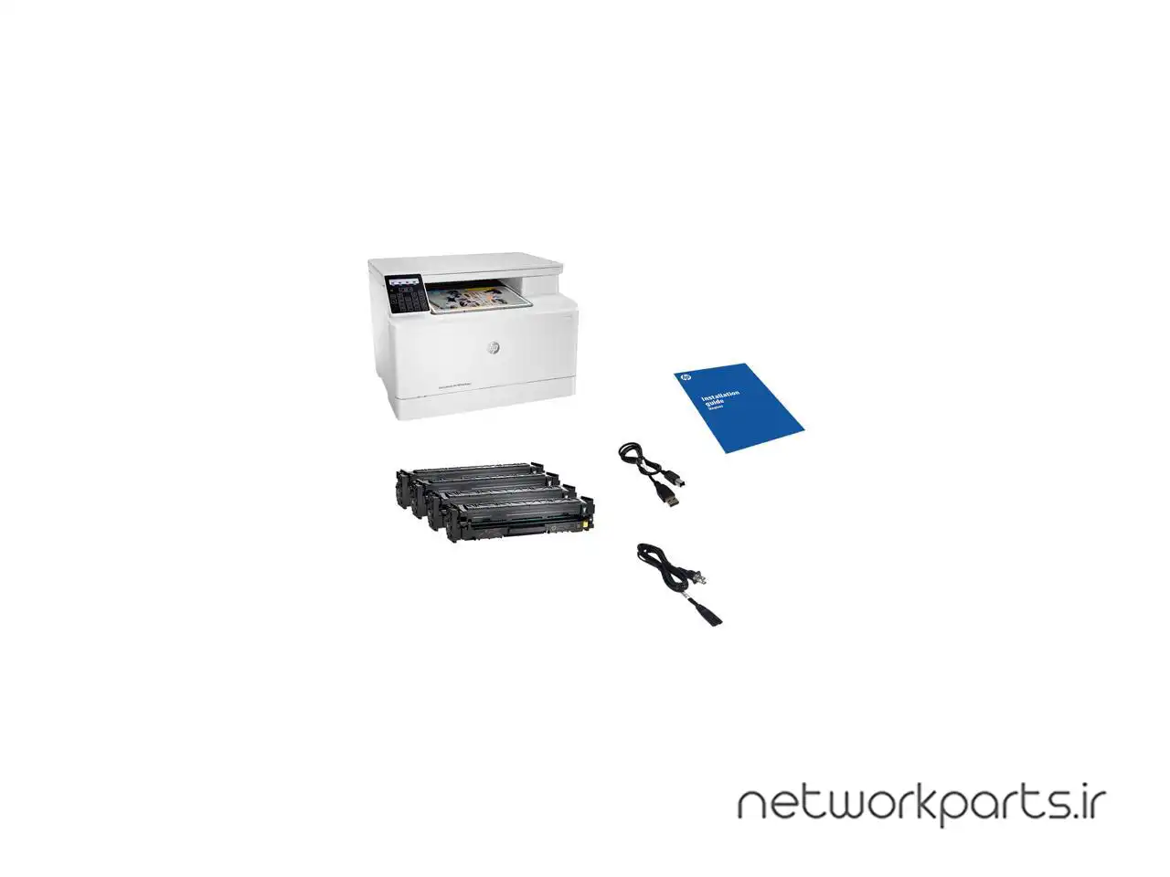 محتویات بسته بندی | HP Color LaserJet MFP M182nw, HP LaserJet Black Introductory toner cartridge (~800 page yield), HP LaserJet Cyan Introductory toner cartridge, HP LaserJet Magenta Introductory toner cartridge, HP LaserJet Yellow Introductory toner cartridge (~700 color composite C/Y/M page yield) Installation guide, Power cord, USB cable |
