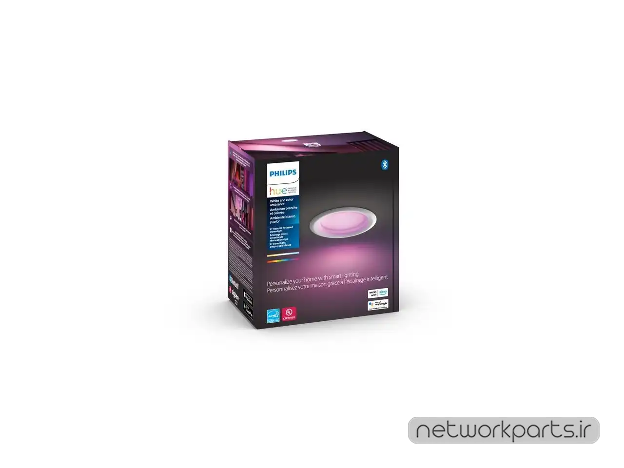 ویژگی ها | ±10-year lifespan, A+, Bluetooth and Hue Bridge compatible, Dimmable out of the box, Low energy consumption, White ambiance +16 million colors |
