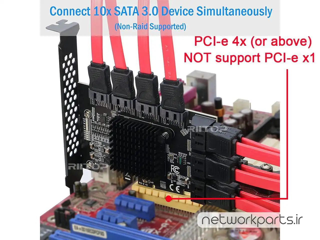 ویژگی ها | RIITOP PCIe SATA Card allows you add Extra 10x SATA 3.0 Ports via PCI-e x4/x8/x16 slot to your mainboard, No drivers need. Easy to install, Plug and play [Chipset and Speed] - RIITOP PCIe to SATA Ada |
