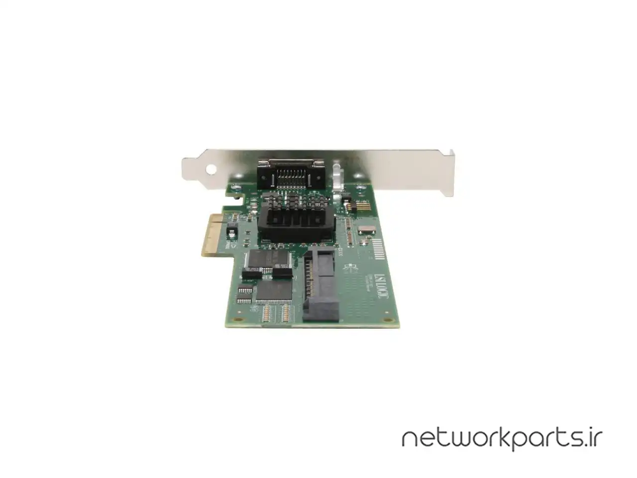 ویژگی ها | 8-lane 2.5 Gb/s PCI Express, Allows more than 122 total end-point devices, Connects to both SAS and SATA HDDs and tape drives, Fusion-MPT architecture provides more than 140,000 I/Os per second, MD-2 small form-factor design, Supports all major operating systems, x4 internal SFF-8484 /x4 external SFF-8470 connectors |