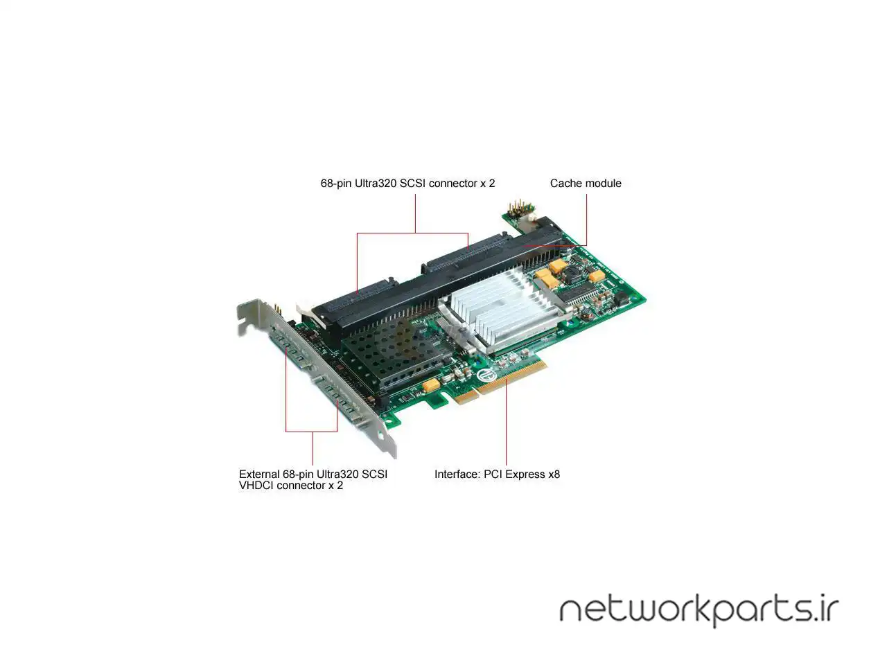 ویژگی ها | Dual-channel Ultra320 SCSI with support for up to 30 hard drives, Intel 80332 I/O processor at 500MHz, Intel RAID Software: Intel RAID BIOS Console, Intel RAID Web Console, and Intel RAID Flash Utilities, Microsoft Server Clustering Support, PCI Express x8 interface, Support for up to 512MB of ECC SDRAM |