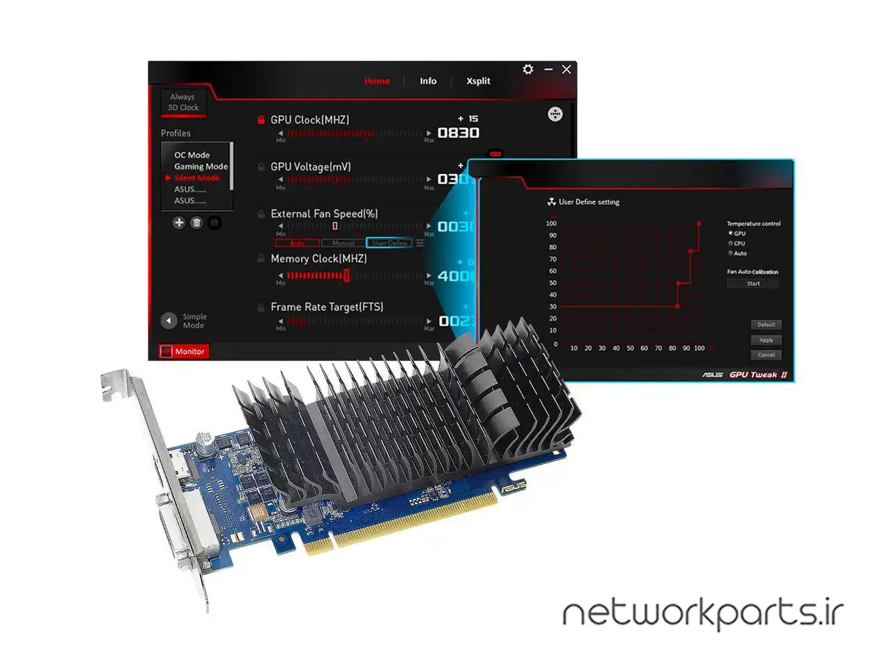 | ویژگی ها | Auto-Extreme Technology uses automation to enhance reliability., GPU Tweak II makes performance tweaking easier and more visual than ever with an intuitive, all-new UI., Silent passive cooling means true 0dB - perfect for quiet home theater PCs and multimedia centers. |
