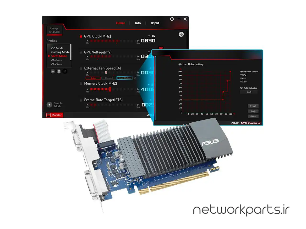 | ویژگی ها | ASUS exclusive heatsink design with passive cooling ensures quiet HTPC and multimedia operation, Auto-extreme Manufacturing Technology delivers premium quality and reliability with aerospace-grade Super Alloy Power II components to run faster and last longer than reference, Fully supports DX12 on Microsoft Windows 10, GPU Tweak II makes monitoring performance and streaming easier than ever, featuring Game Booster and XSplit Gamecaster, all via an intuitive interface, Optimal for multi-tasking with three outputs for multi-display support |