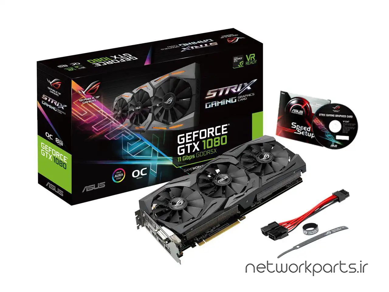 | ویژگی ها | - ASUS FanConnect II for optimal cooling performance., - GPU Tweak II with Xsplit Gamecaster provides intuitive performance tweaking and lets you stream your gameplay instantly., - NVIDIA ANSEL for a revolutionary new way to capture in-game screenshots., - Patented Wing-Blade Fan Design with IP5X dust-resistance for longer fan lifespan., - VR-friendly HDMI ports for immersive virtual reality experiences., '- ASUS Aura Sync for perfect RGB LED synchronization., Industry Only Auto-Extreme Technology with Super Alloy Power II delivers premium quality and best reliability., MaxContact Technology that is 2X more contact with GPU for improved thermal transfer., ROG Strix GeForce GTX 1080 Ti 11GB GDDR5X with Aura Sync RGB for best VR & 4K gaming |