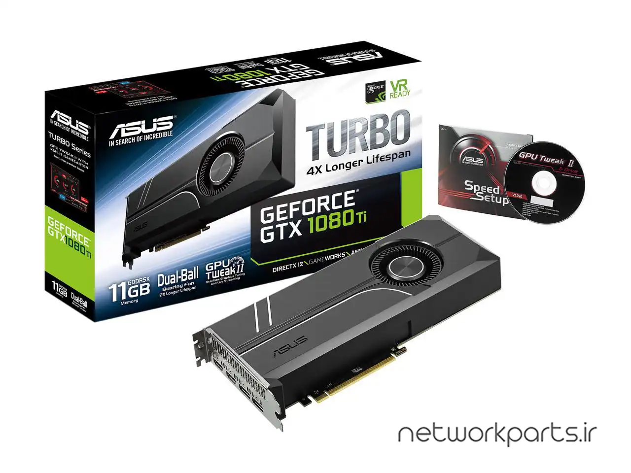 | ویژگی ها | - Dual-ball Bearing Fan runs smoother by reducing friction, further improving 4X longer card lifespan and cooling efficiency., - GPU Tweak II with Xsplit Gamecaster provides intuitive performance tweaking and lets you stream your gameplay instantly., - NVIDIA GeForce GTX 1080 Ti is the fastest gaming GPU that delivers 35% faster performance than the GeForce GTX 1080., - VR-friendly HDMI ports for immersive virtual reality experiences., ASUS Turbo GeForce GTX 1080 Ti 11GB GDDR5X for best VR, 4K gaming and system integration, Customizable Backlit Logo gives your system a truly unique look with your own LED backlit logo design., Industry Only Auto-Extreme Technology with Super Alloy Power II delivers premium quality and best reliability. |