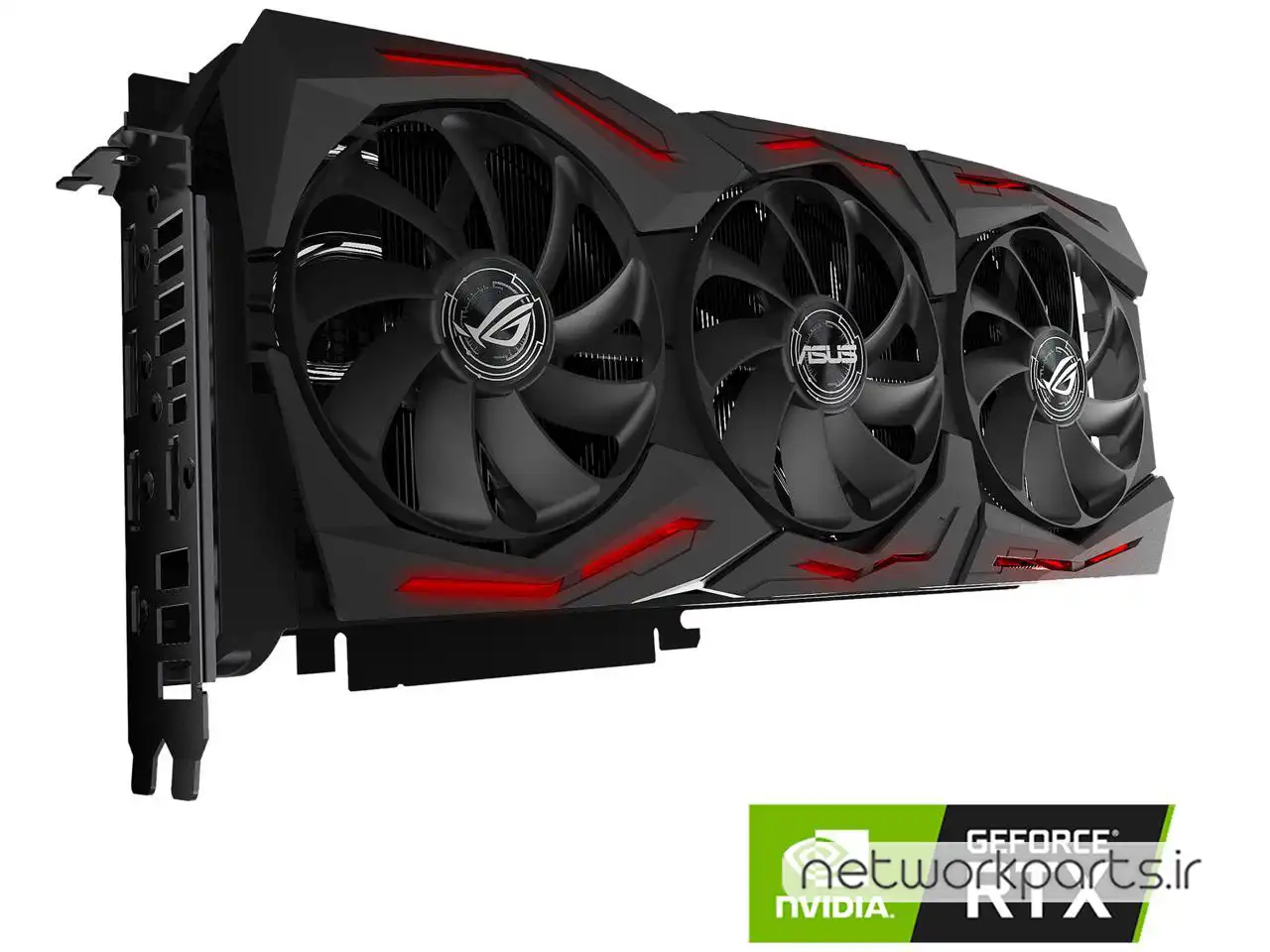 | ویژگی ها | 2.7-Slot Design expands cooling surface area by over 20% compared to last gen., 4K: Step up to the ultimate 4K gaming experience with GeForce RTX and enjoy today's biggest games in amazing detail., ASUS FanConnect II equips a hybrid-controlled fan header for optimal system cooling., Auto-Extreme Technology uses automation to enhance reliability., Axial-tech Fans feature an all-around better design and IP5X dust resistance., DirectX 12: Power new visual effects and rendering techniques for more lifelike gaming., GPU Tweak II provides intuitive performance tweaking, thermal controls, and system monitoring., MaxContact Technology allows 2X more contact with the GPU chip for improved thermal transfer., nvidia-turing:-rog-, Super Alloy Power II includes premium alloy chokes, solid polymer capacitors, and an array of high-current power stages. |