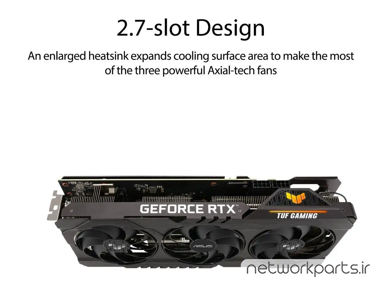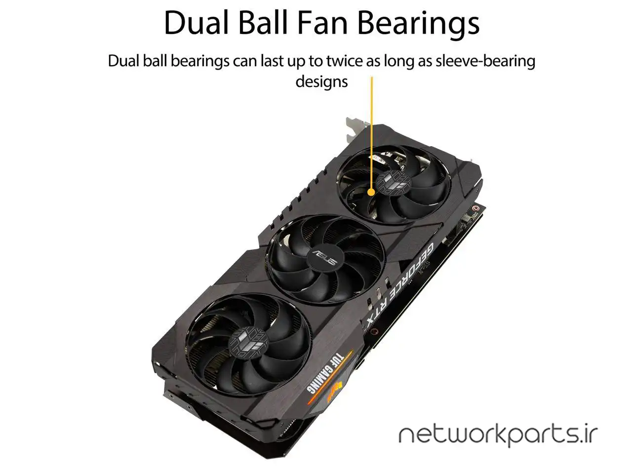 | ویژگی ها | 2nd Generation RT Cores, 3rd Generation Tensor Cores, Axial-tech Fan Design has been newly tuned with a reversed central fan direction for less turbulence., Dual Ball Fan Bearings can last up to twice as long as sleeve bearing designs., GPU Tweak II provides intuitive performance tweaking, thermal controls, and system monitoring., Military-grade Capacitors and other TUF components enhance durability and performance., NVIDIA Ampere Streaming Multiprocessors |