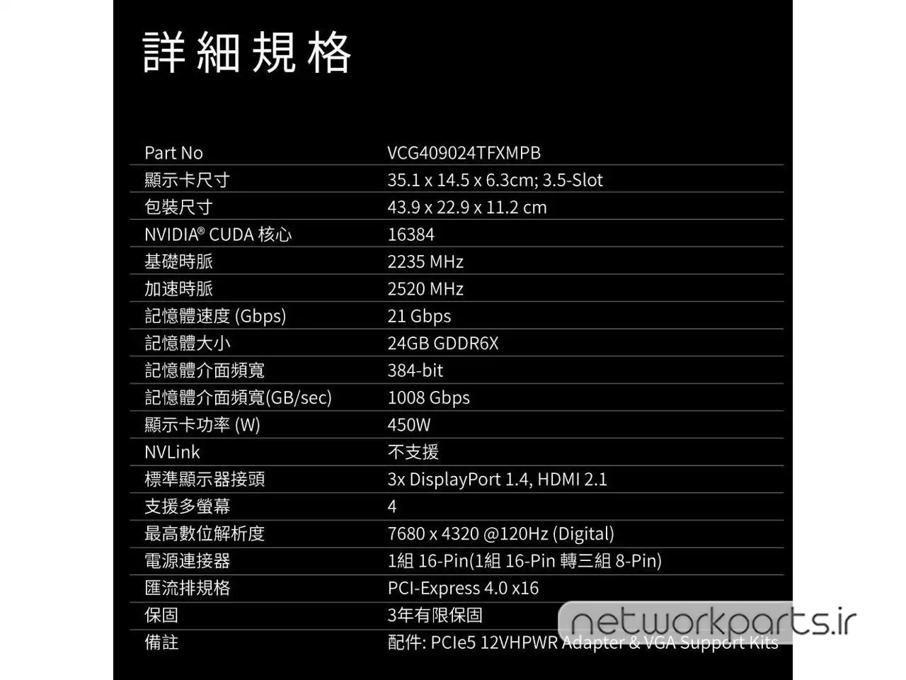 | مدل محصول | PNY-XLR8-RTX4090-24GB-DDR6X-UPRISING |
