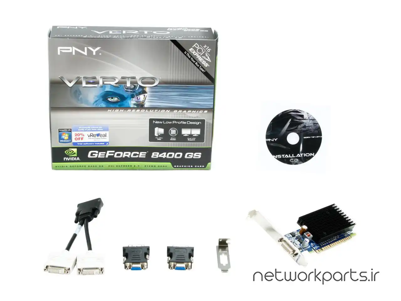 | محتویات بسته بندی | (2) DVI to VGA adapters, DMS 59 Cable, Low-Profile bracket kit, VCG84DMS5SXPB |