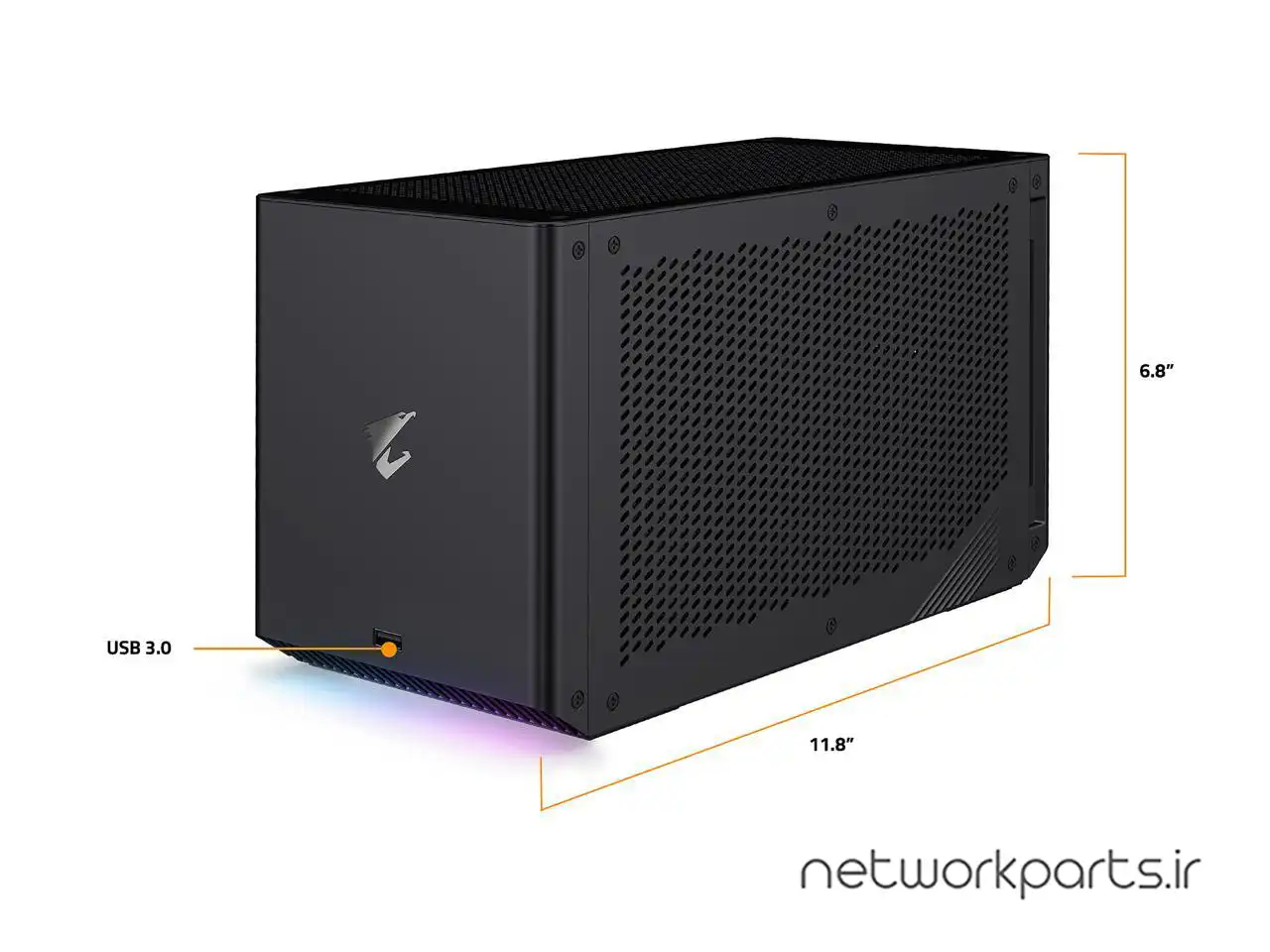 ویژگی ها | LHR (Lite Hash Rate) version, Powerful GeForce RTX 3090 delivers incredible performance for games, creators and A.I., RGB fusion 2.0 - 16.7M color synchronize with other AORUS devices, Supports 1 x Ethernet port, Supports 3 x USB 3.0 for peripheral, Supports Power Delivery (PD 3.0) to charge the laptop PC, Thunderbolt 3 plug and play, WATERFORCE all-in-one cooling system |