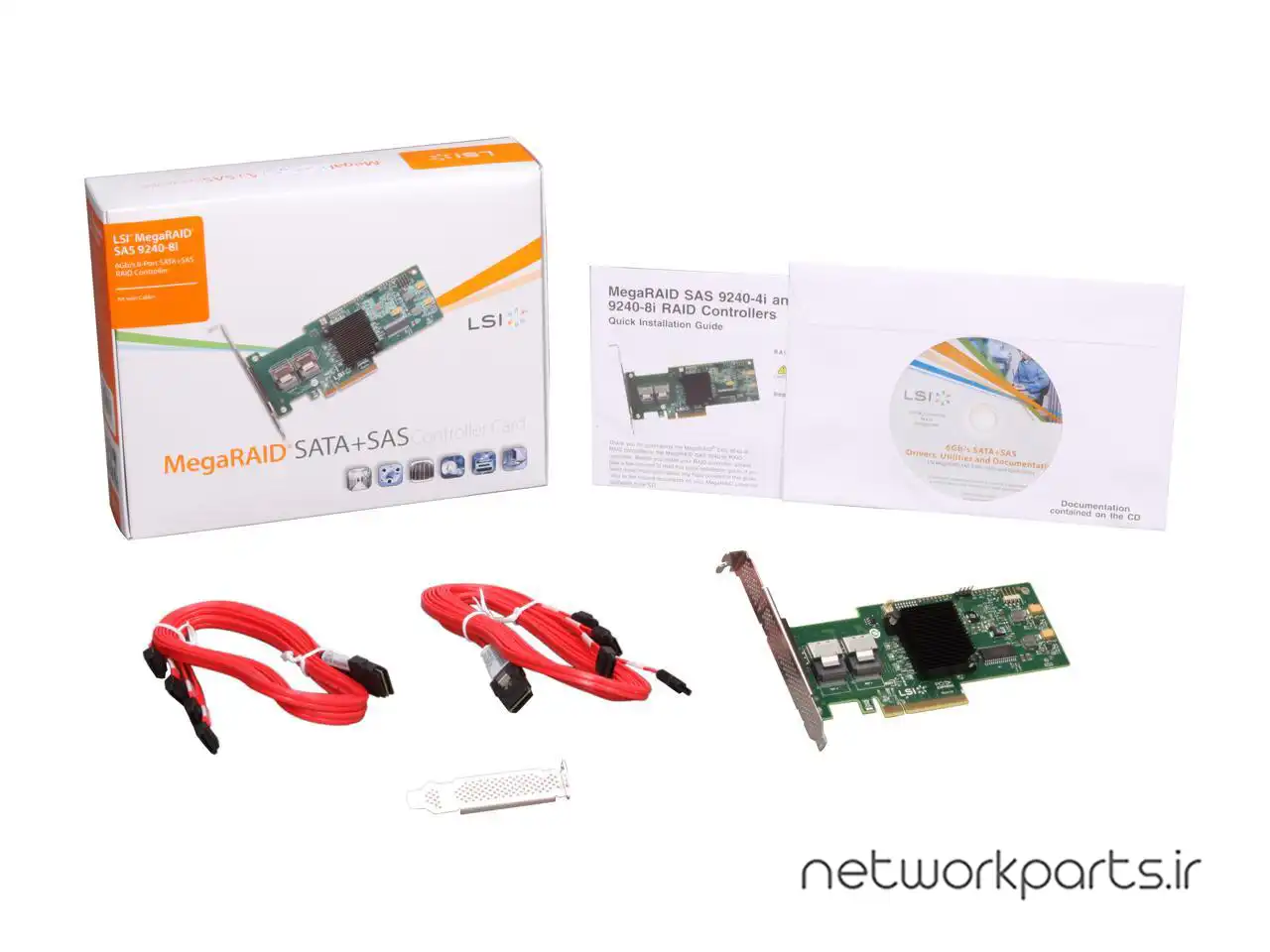 محتویات بسته بندی | 2 Mini-SAS to (4) SATA fanout cables (0.6m), Driver & Manual CD, LP bracket, MegaRAID SAS 9240-8i, QIG |