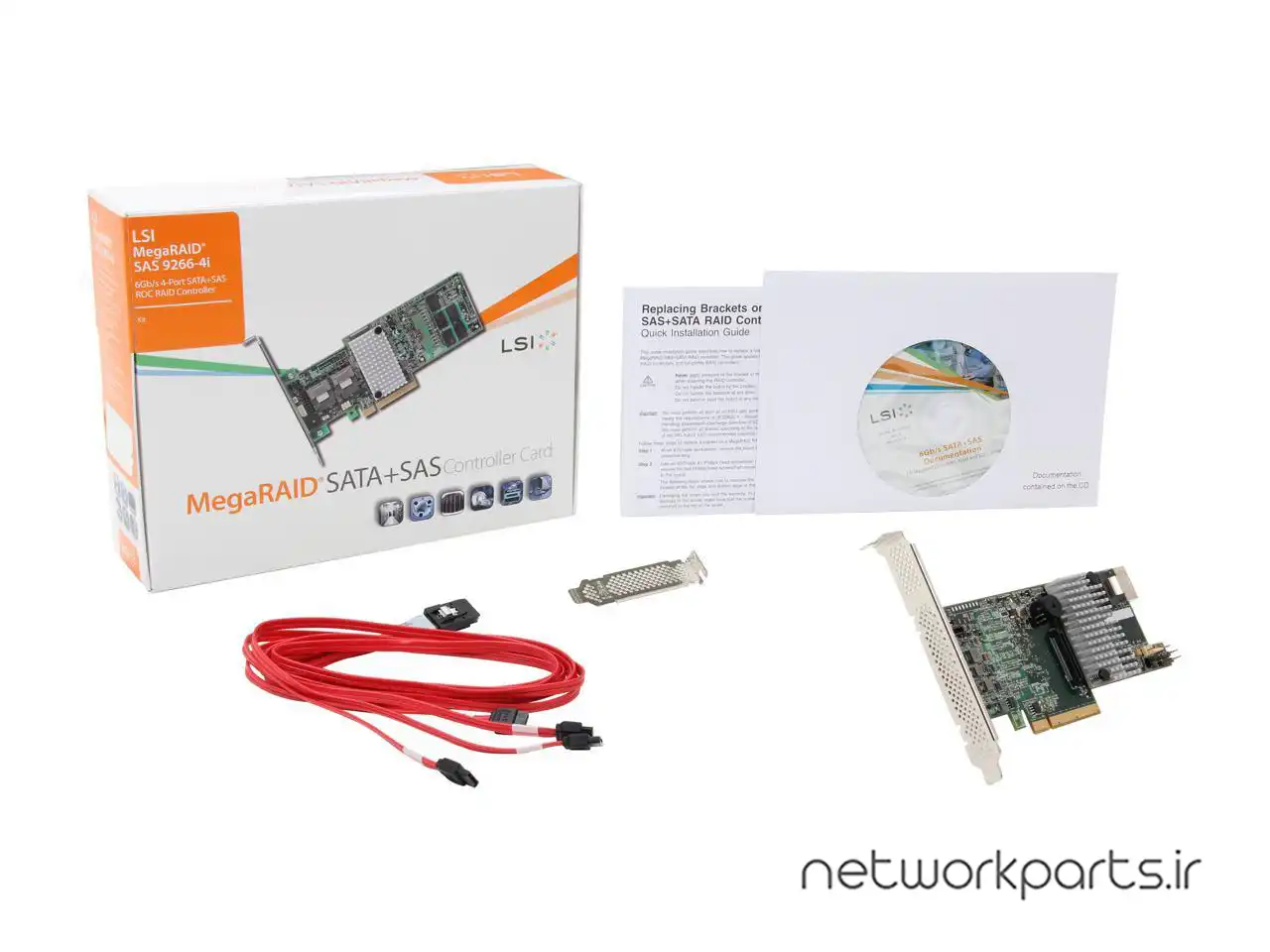 محتویات بسته بندی | (1) 1-meter Mini-SAS SFF-8087 to SATA fanout cable, Documentation CD, LP bracket, MR SAS 9266-4i, QIG |