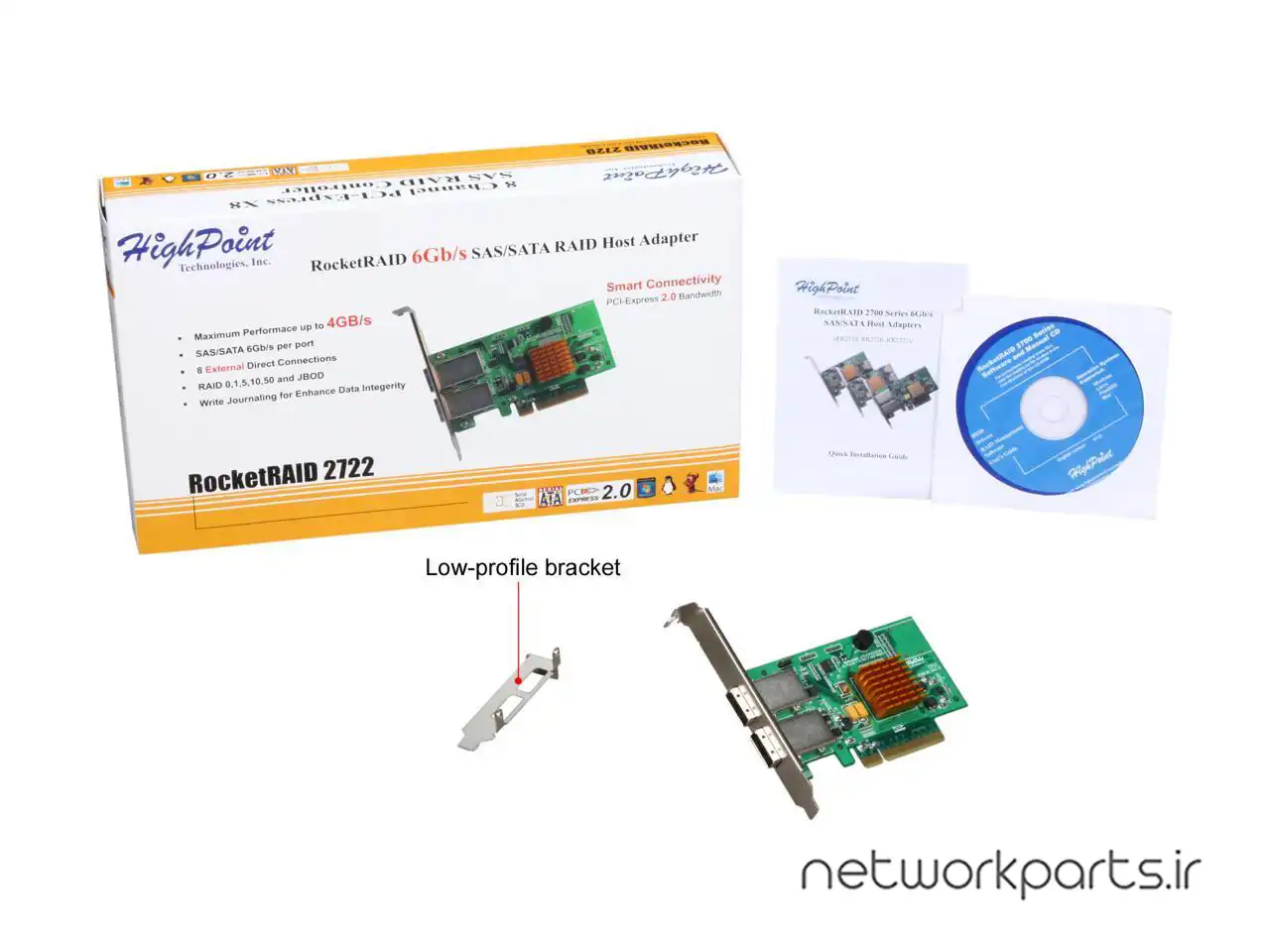 ویژگی ها | Activity/Fail LED: No, Alarm/Buzzer: Yes, HighPoint RocketRAID 2700 HBA's are cost-effective, high-performance PCI-Express 2.0 6GB/s SAS RAID controllers, and are ideal for SMB server and workstation configurations., RocketRAID 2700 HBA's are fully backwards compatible with SAS/SATA 3Gb/s devices, PCI-Express 1.0 and 2.0 motherboards, and are compliant with all major operating systems including Windows, L, Up to 8 external SAS/SATA devices with point-to-point connectivity |